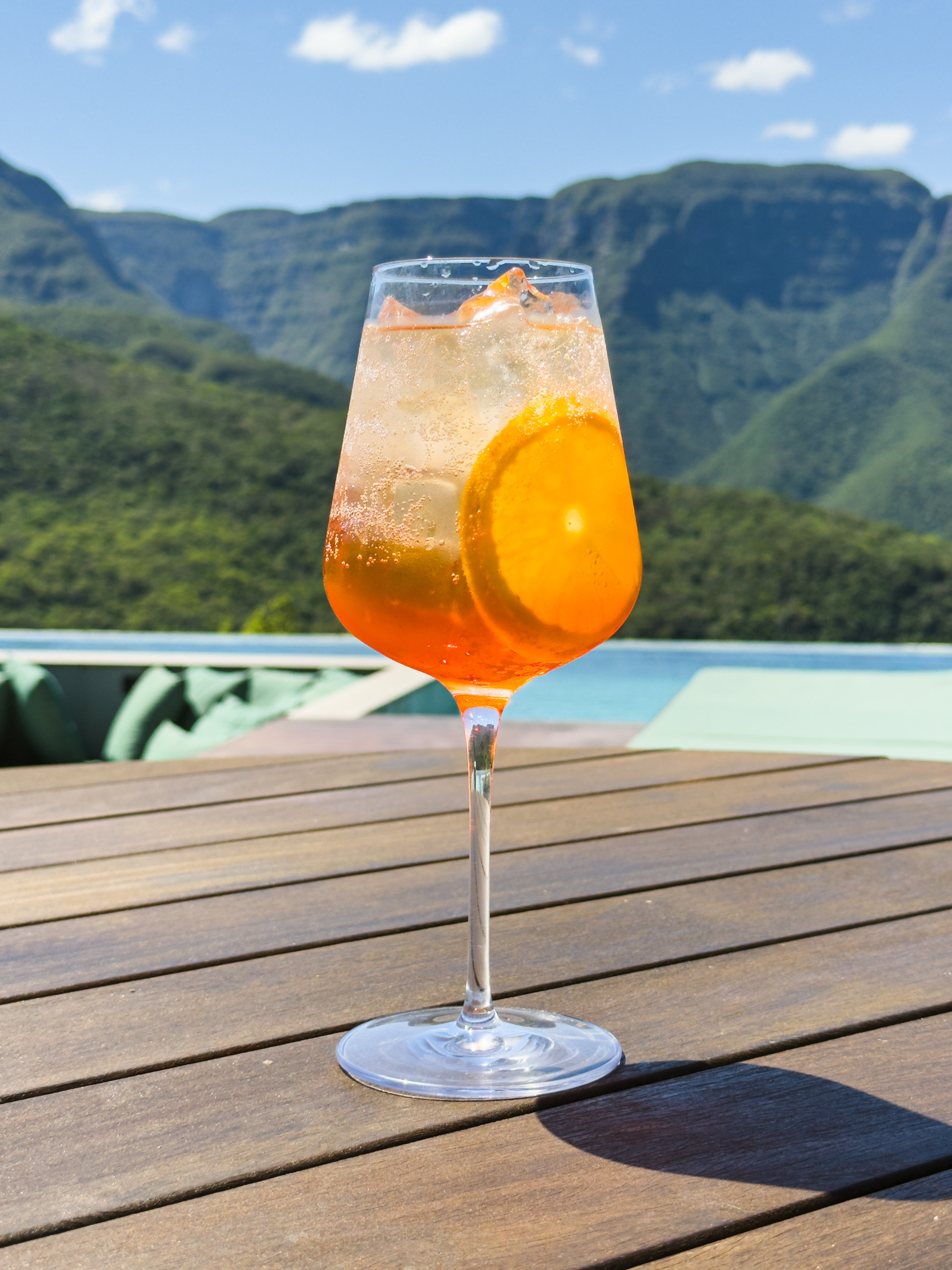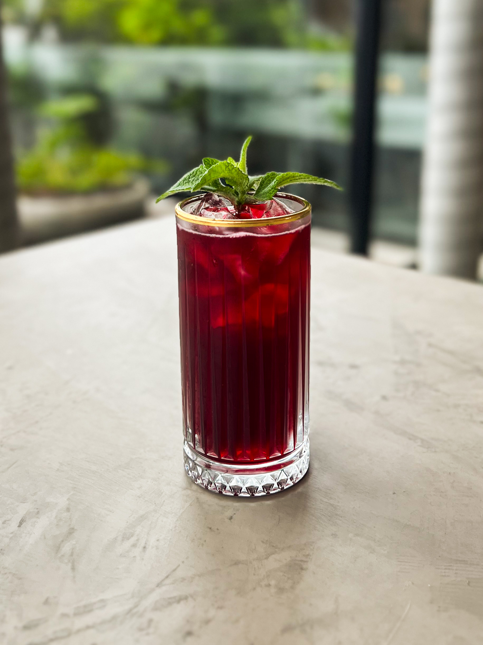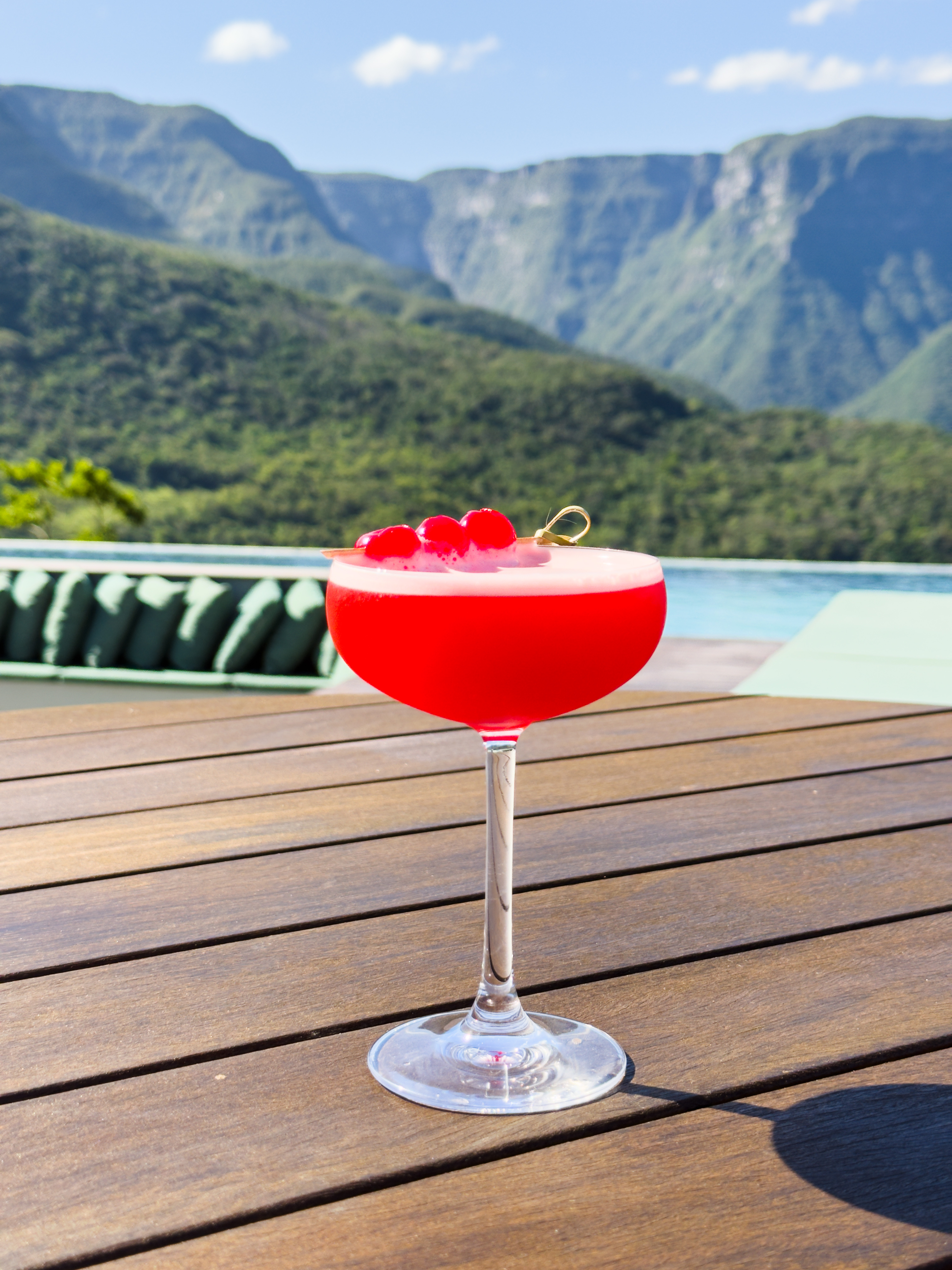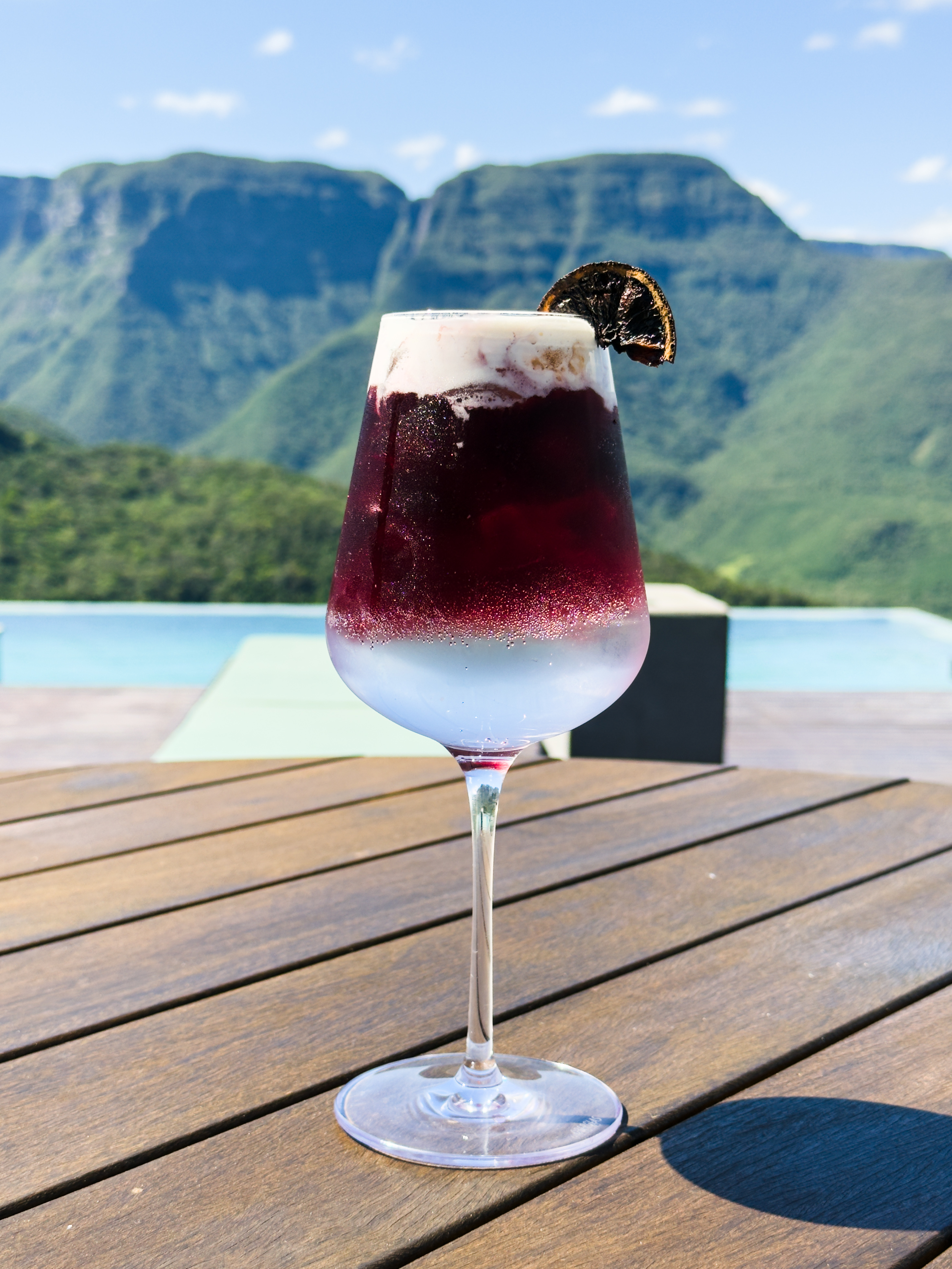 Gin, uvas, campari, Xarope e suco de limão siciliano.